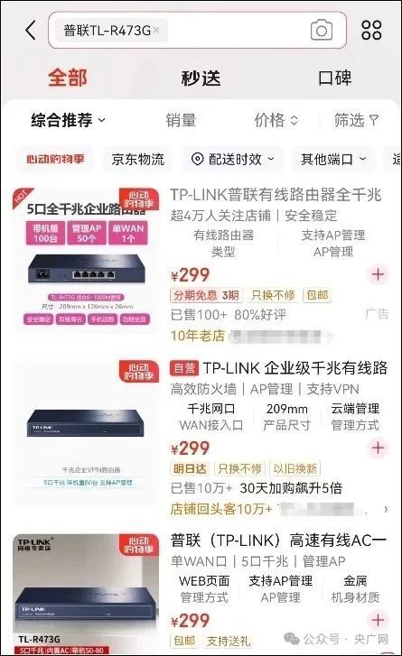 普联TL-R473G在某电商平台上售价为299元(央广网发 网络截图)