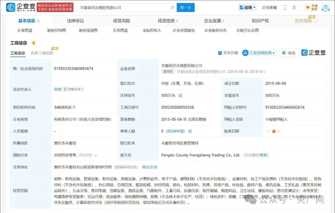 丰都县洪正商贸有限公司(央广网发 网络截屏)